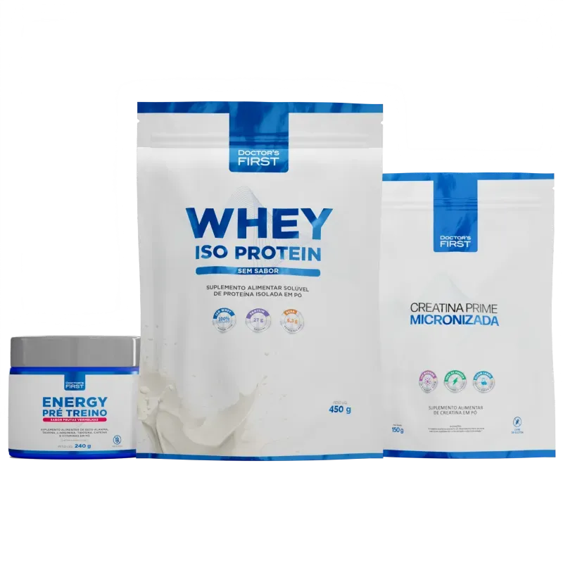 O Protocolo Força & Resistência da Doctor's First foi criado para atletas e praticantes de atividade física que buscam um suporte nutricional completo, combinando três produtos essenciais para o ciclo de treino: pré, durante e pós.