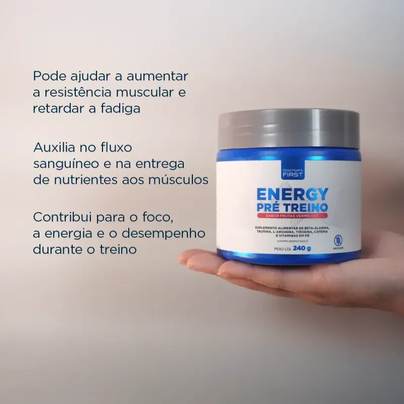SuplementosPerformance FísicaEnergy Pré-Treino Sabor Frutas Vermelhas - Com Beta-Alanina 2g e Cafeína 100mg - 240g
